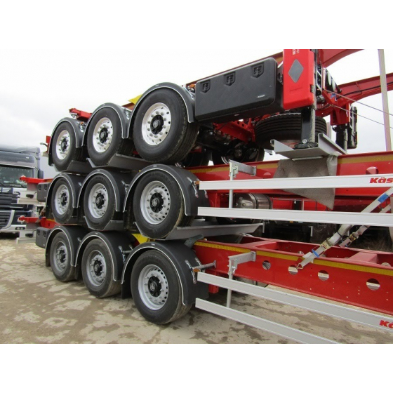 Полуприцеп-контейнеровоз облегченный Kassbohrer SHG L имеет наилучшее распределение веса при транспортировке контейнеров 40 или 45Ft .