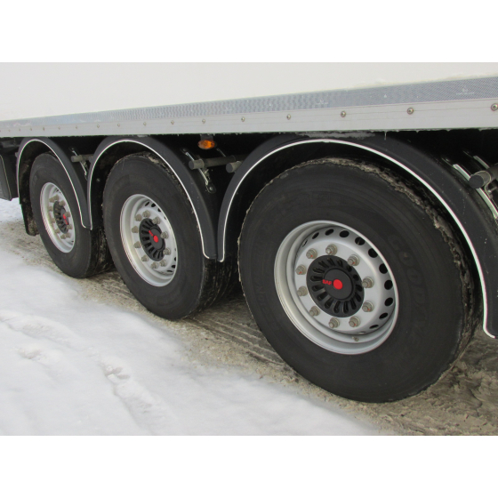Крепление запасного колеса: Трехосная пневматическая система SAF с дисковыми тормозами и нагрузкой 9 тонн (22,5")
