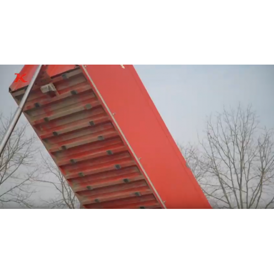 Полог: Оснащен системой сворачивания полога в бок, которая управляется вручную с помощью специального рычага, для удобства управления предусмотрена технологическая платформа. Устойчив к длительному воздействию температур от -40 °C до +70 °C и кратковременному нагреву до 220 °C. Плотность 900 г/м3